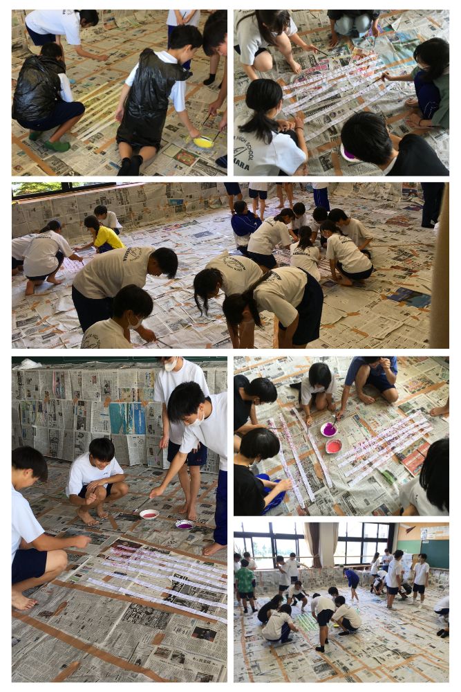 9月16日(火)放課後 運動会で使用するハチマキの 着彩作業がありました。 昨年はクラスごと制作したそうです。 その反省をふまえ、今年は縦割りチームで 3日間に分けて実施です。 先輩が制作方法を後輩に伝えながら、 わいわい楽しそうにやっていましたね。 続きはコチラ 投稿ナビゲーション 無言清掃(本物)朝の集会は…
