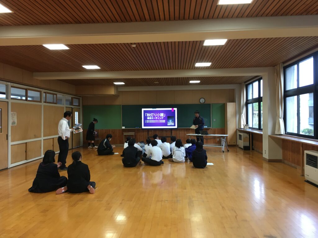 昨日、宿泊学習の振替休だった1年生を中心に、明日の「秋灯り小諸」事前ミーティングがありました。