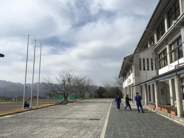 校舎のまわりをウロウロしている芦中生。