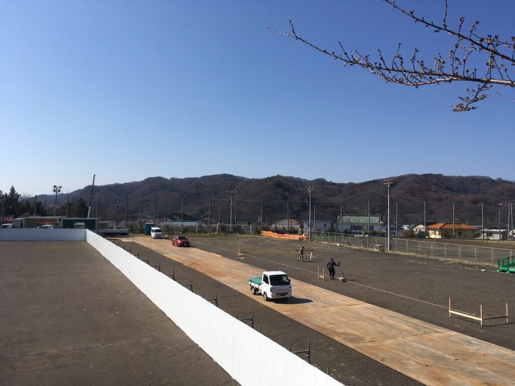仮設校舎建設予定地も、何やら動き始めた気配があったり…(業者の方が)