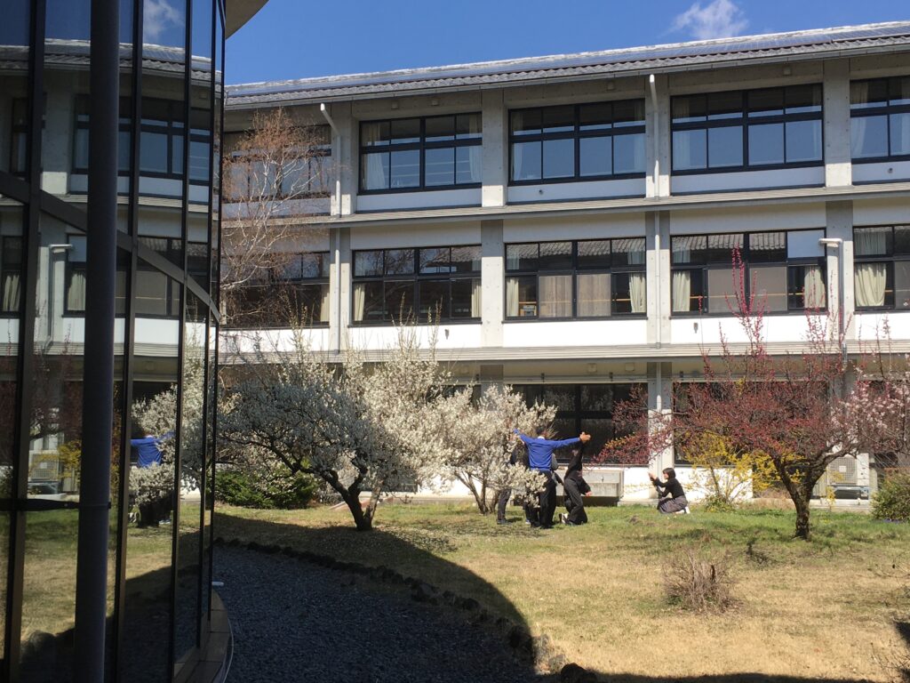 中庭では、新学年で学年通信用の写真撮影をしていたり…
